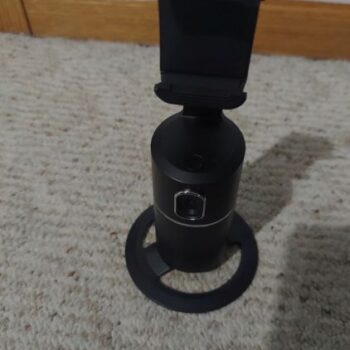 What an elegant little device! It operates by tracking your face, and I'm absolutely delighted with it. It's quite responsive, though there's a bit of a learning curve, but overall, it's fantastic. It's compact and sturdy, and it securely holds my phone in both portrait and landscape orientations, preventing any tipping over. Its compact size is a plus.
