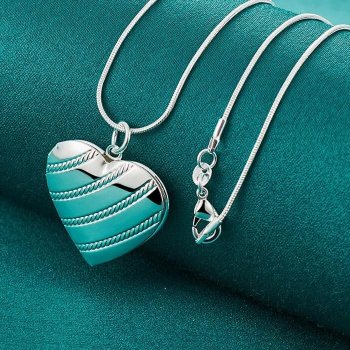 925 Sterling Silver Love Heart Photo Frame Necklace