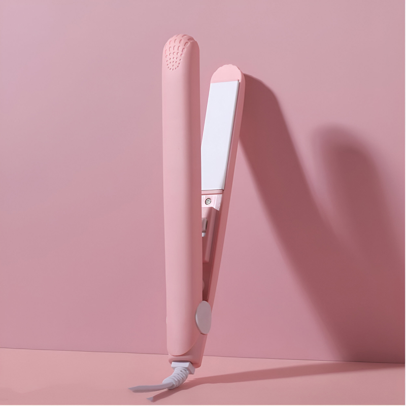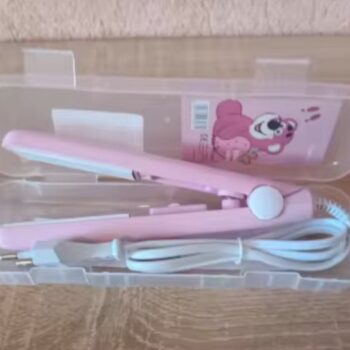 Mini hair straightener. Compact, convenient to take with you, even fit in a small handbag. Always can be carried with you has a small weight, convenient to use, hot quickly. With the help of this mini curling iron, you can quickly fix your hair if suddenly you are caught in the rain. Very happy with this purchase.