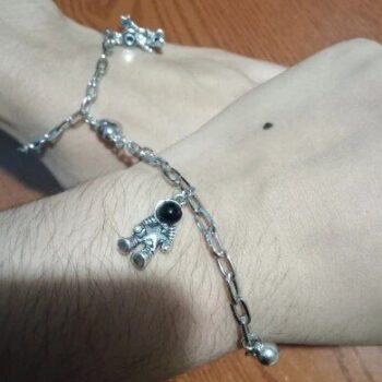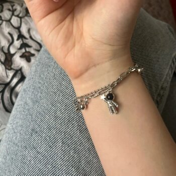 This bracelet is simply enchanting, with its captivating blend of cosmic and romantic motifs; the astronaut charm evokes a sense of wonder and curiosity, while the heart charm adds a touch of sweetness and affection. The double-layer design adds visual interest and makes it a versatile accessory that can be dressed up or down with ease.