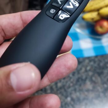 This pointer is fantastic! Easy to set up and feels great in the hand, which is helpful during public speaking events. The laser pointer is clear and far-reaching, and the other buttons are easy to find and press.