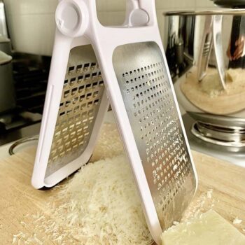 I'm delighted with this foldable grater's performance. Its dual functionality for both cheese and ginger is a huge plus in my kitchen. The ease of cleaning and the compact design for storage are commendable features. Its sharp blades handle all grating tasks efficiently. A solid investment for any home cook
