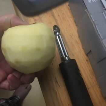 The sharp blade and swivel feature make peeling easy, especially for irregularly shaped veggies like sweet potatoes. However, the plastic bar behind the blade can cause peeled sections to stick to the vegetable, so you have to manually flick them off to see where you've peeled.