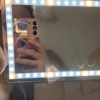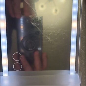 Impressions are off scale! Wife was satisfied. About the product, there is a charging wire, 2 lighting options, warm, cold and combined. The reflection in the mirror is clean, not crooked. Elastic bands hold strong. I am very satisfied with the product and highly recommend it to everyone. Thank you very much.