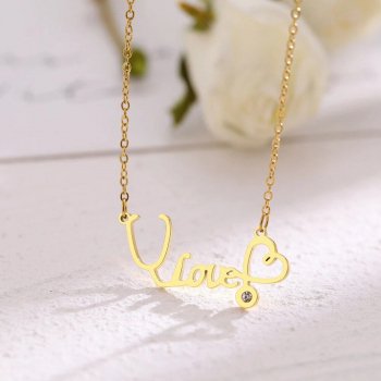 Stainless Steel Stethoscope Heart Zircon Pendant Necklace