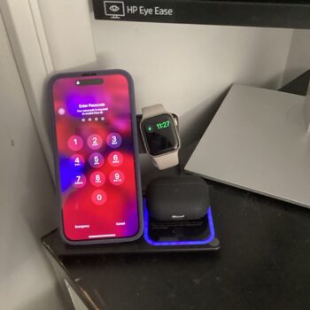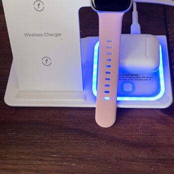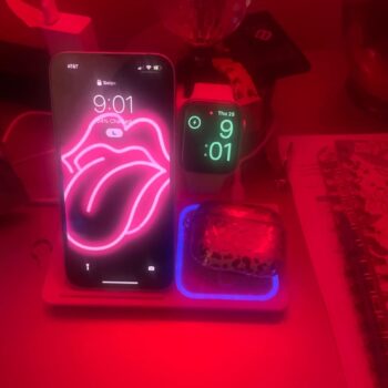 Charges my AirPods, phone, and watch all at once, and looks nice on my nightstand. The blue light makes a great nightlight.